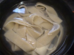 きしめん状で、小麦の味がしっかりして、かなり美味しかったです。