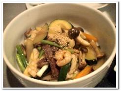 トッポギっていうと、赤くて甘辛~いものがメジャーですが、こちらはさっぱりした味付けの野菜がたっぷり入ったトッポギ。写真だと野菜炒めみたいですけれど、この中にもちもちしたトッポギがはいっておいしいです!