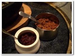 そこに手作りの<肉みそ>と<コチュジャン>をいれていきます。