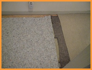 左の白い部分は新しいじゅうたんの下に敷くフェルトです。 このフエルトが、工事をしていただいた方曰く<魔法のフエルト>らしく、