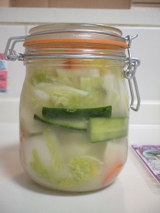 私は人参少し、キュウリ、大根、白菜。以前、りんごの薄切りも本格的かなと思って