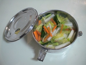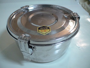 考えた挙句、これ。 通常のキムチが約1キロ入る小型のキムチ専用ステンレス容器。