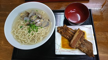 おいしかったですよ。おすすめの ●あさりそば(ソーキ付)
