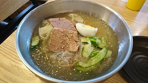 やっぱり暑い日は 水冷麺&マンドウ(蒸したての大きい餃子)