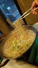 韓国風うどん お鍋のタッカルクッスの<タッ>は鶏と言う意味。