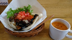 ブーケのようなサンドで、ものすごく食べ応え満点。小食の方にはハーフもあります。