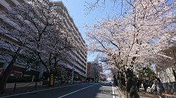 桜が8分咲きくらいの宮崎台駅前・桜坂 (午前中に撮ったので影があってすみません!)3月上旬です。