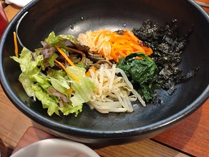 それにビビンパ用ナムル追加で、釜めしのご飯をそれに入れてビビンパにします