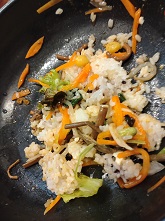 ここは韓国式釜めしのお店で、白米や雑穀米の中に えんどう豆・銀杏・芋・カボチャなどがはいっていて、ガスで炊きます。