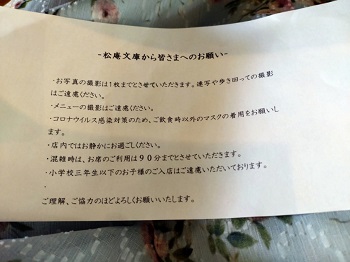 席に着くとランチメニューと注意事項の紙が・・
