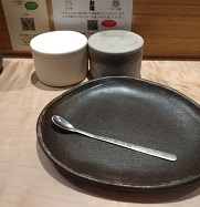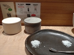 席には、とんかつ用のお塩2種。 ロース、ひれ用それぞれつけてみてくださいとのこと