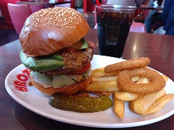 マックなどとはまた違った、少しお値段がはりますが、 ジューシーなパテ、たっぷりの新鮮野菜などのご馳走感、