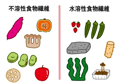食物繊維は消化しない。 水に溶ける「水溶性」と水に溶けない「不溶性」があり