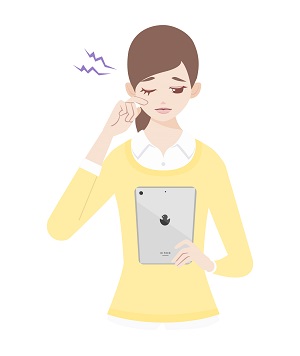 乾き目、目の疲れ、充血、目が重い、かすみ目、まぶしい、 涙が出てしまう、目がごろごろして痛いなど。