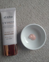 ピンクのクリームで日焼け止め、下地をかねてつやもでるとのこと、