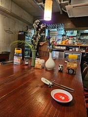 大きなテーブル、小さなテーブル、奥には半個室のような席もあり、 スタイリッシュな内装です。