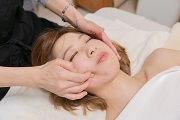 お顔の筋膜を引き上げる技術や、タッピングによるリンパ流し